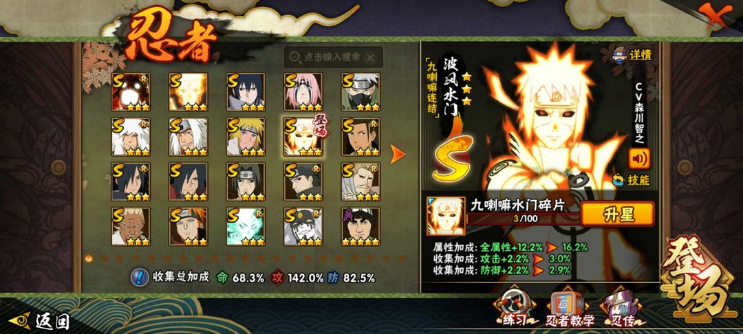 金身水门⭐六尾鸣人⭐忍战卡卡西⭐忍战樱⭐大筒木舍人⭐木叶班⭐木叶柱间⭐三忍自来也⭐小胡子⭐侠影佐助
