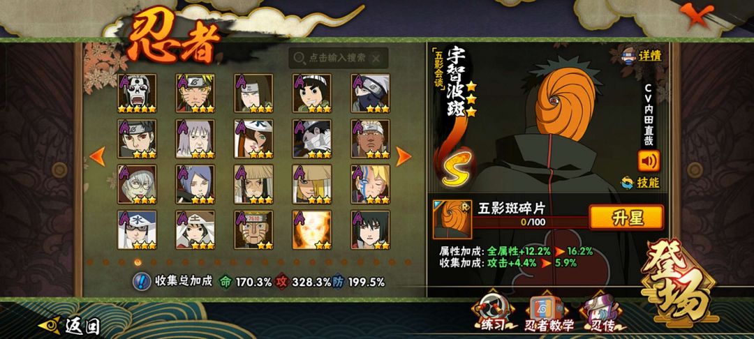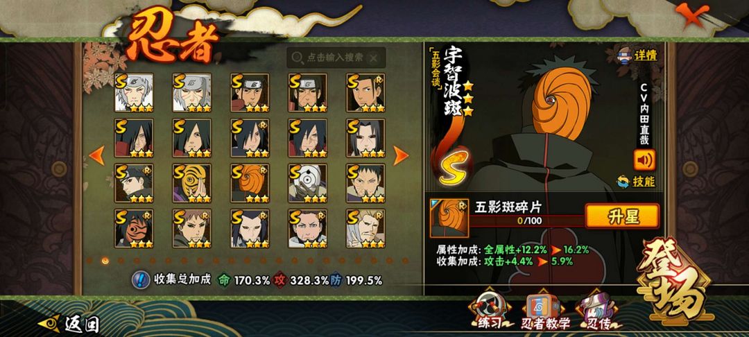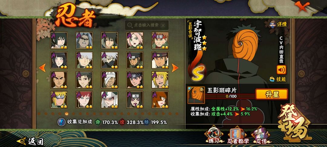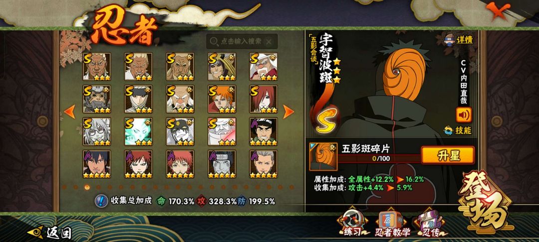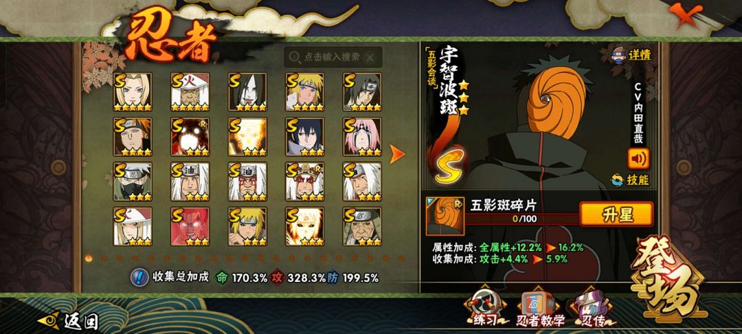 五影会谈斑妖怪纲手已秒✨54S✨83A✨390忍者✨熊猫万蛇✨2800w战力收藏下次再玩嗷