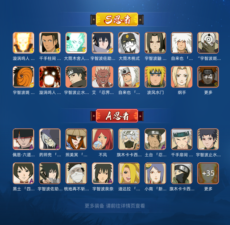 侠隐佐助,五影会谈斑,黑绝,漂带,青春哥,侠兜,新春小南,新水,舍人,解斑,六尾,白面等超多点券A