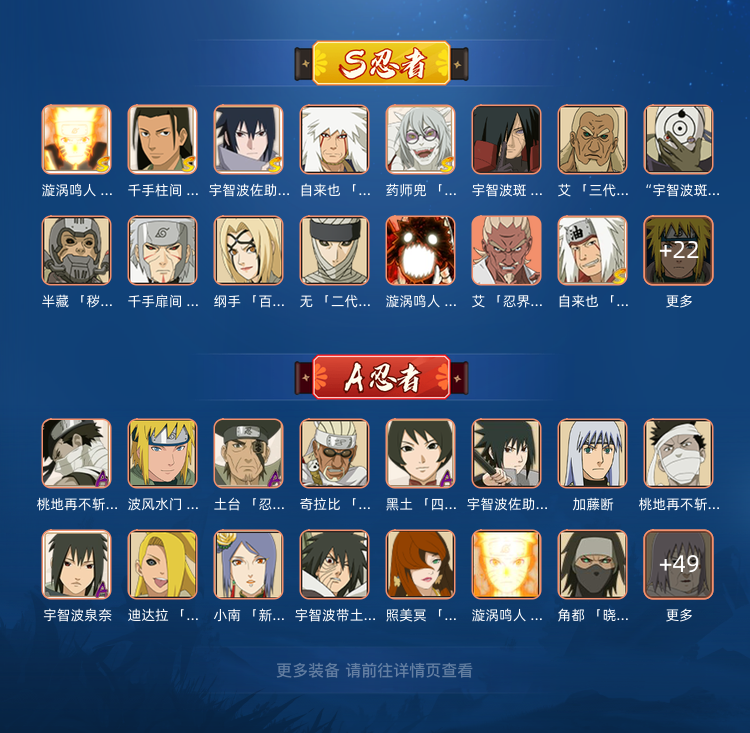 装备描述:漂泊再不斩,新春小南,新春水门,小胡子,金银角,虎皮 老忍者多