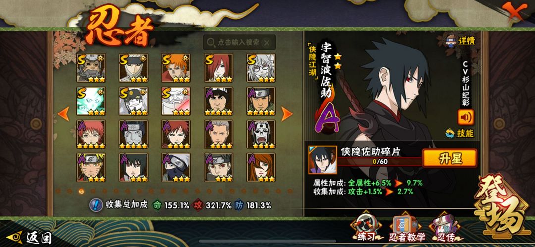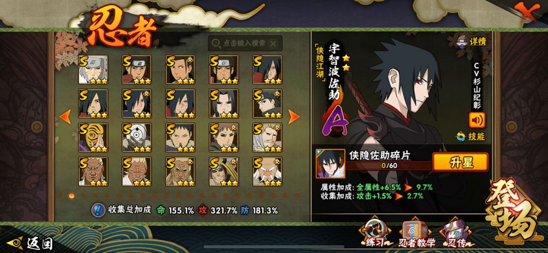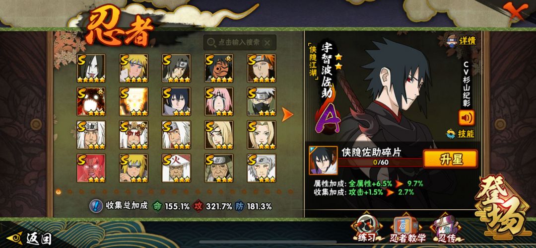 48S⭐️91A!侠隐佐助加时装已秒!所有忍法帖高招A和S全有,所有点卷A漂泊带土时装加胜负已分等