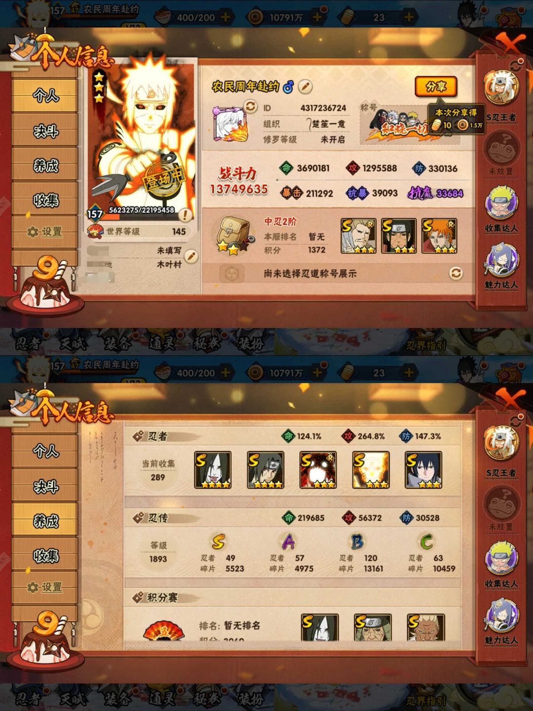 〖49S 57A 1374万 289忍〗九喇嘛水门⭕暴怒六尾鸣人♍传说自来也♍须佐卡卡西♍大筒木舍人
