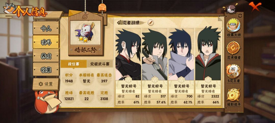44s 侠隐佐助#六尾#2千万战力 #V14 白面具#死二熊猫#万蛇