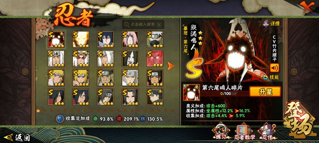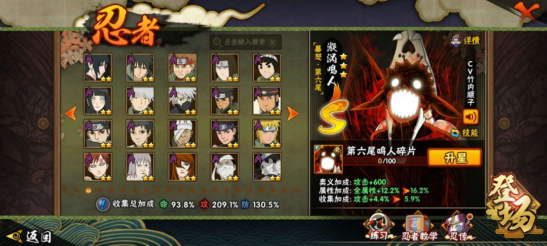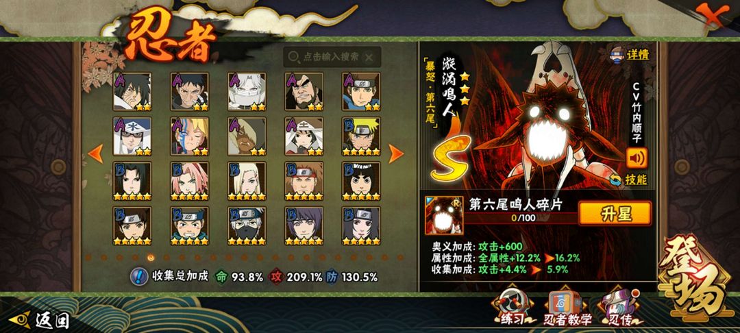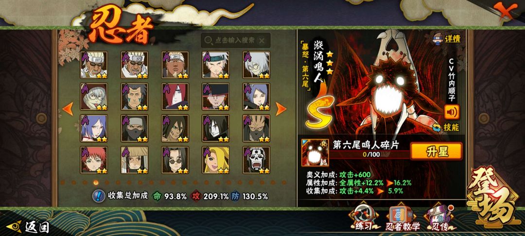侠隐佐助加皮肤,30s 49a 269忍 ,侠隐药师兜加皮肤,11付费忍者,1200w战力