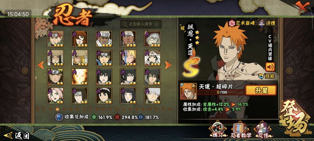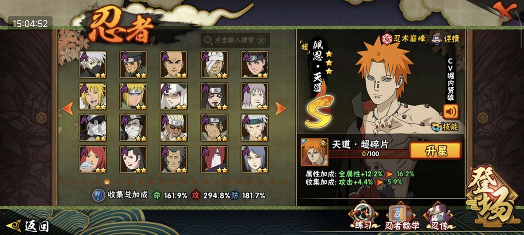 装备描述:战力3000W、忍法帖高招S齐全,可以打段位,团本随便过,没人租号可以继续玩!