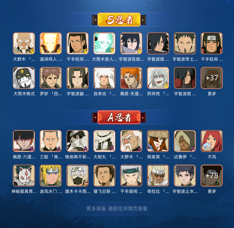 限制: 撤单率<75%才可租用此帐号装备描述:全忍者53S五影会谈斑五影斑九喇嘛水门暴怒六尾鸣人漂泊带土〓93A须佐止水〓面麻〓忍战带土
