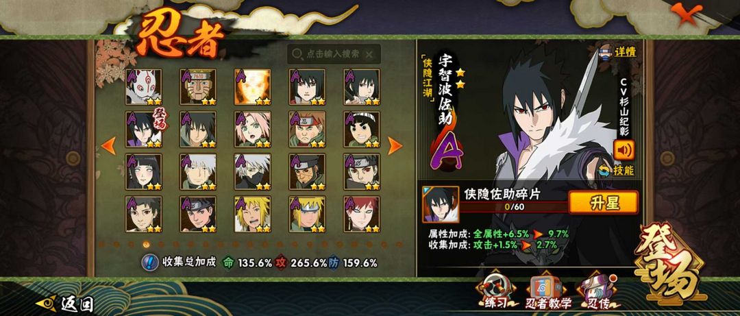 侠隐佐助45s 266忍者♋1000万战力 一半以上忍法帖 漂泊带土♋全新春