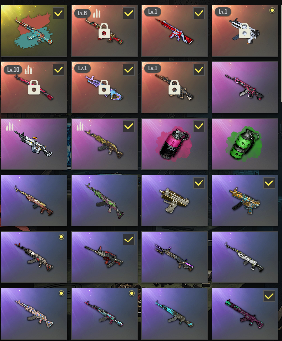 装备描述:【十神器】满级午夜惊魂-Kar98k/满级异色圣诞AK/五级无重力MP5K/魔咒之力MK12/妖魔之触ACE32/时光之农SKS/无信号M416/翡翠色烟雾弹/品红色烟雾弹/双色阿斯顿马丁跑车/毒刺大炮/黑头/王者风衣/危险玩偶大礼包/蒸汽朋克大礼包/西游记套装/PGC2022大礼包之舞143/144/145/146
