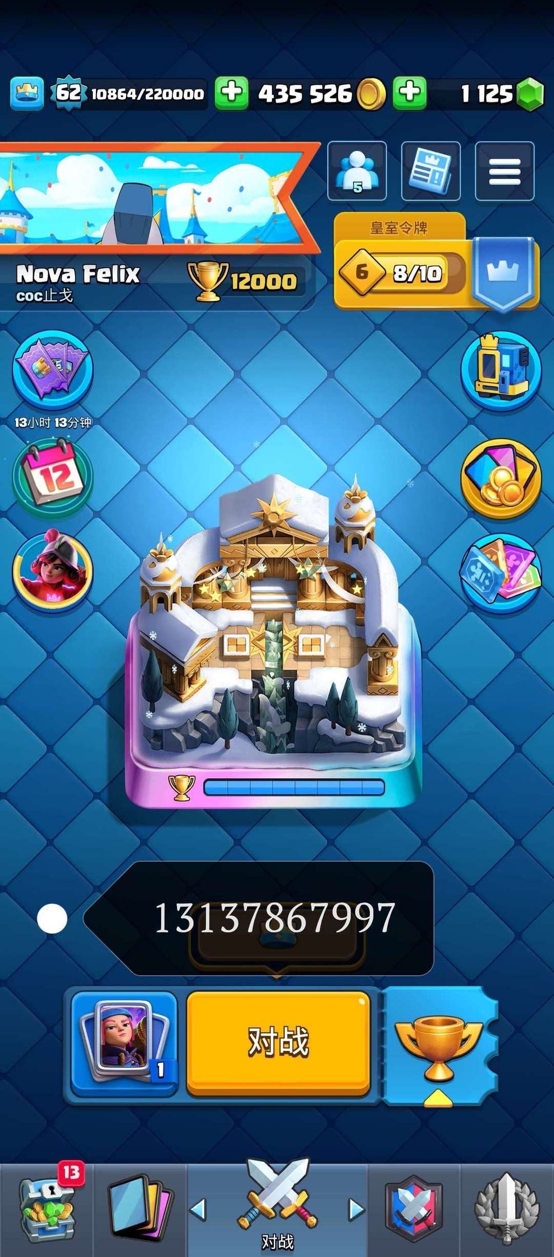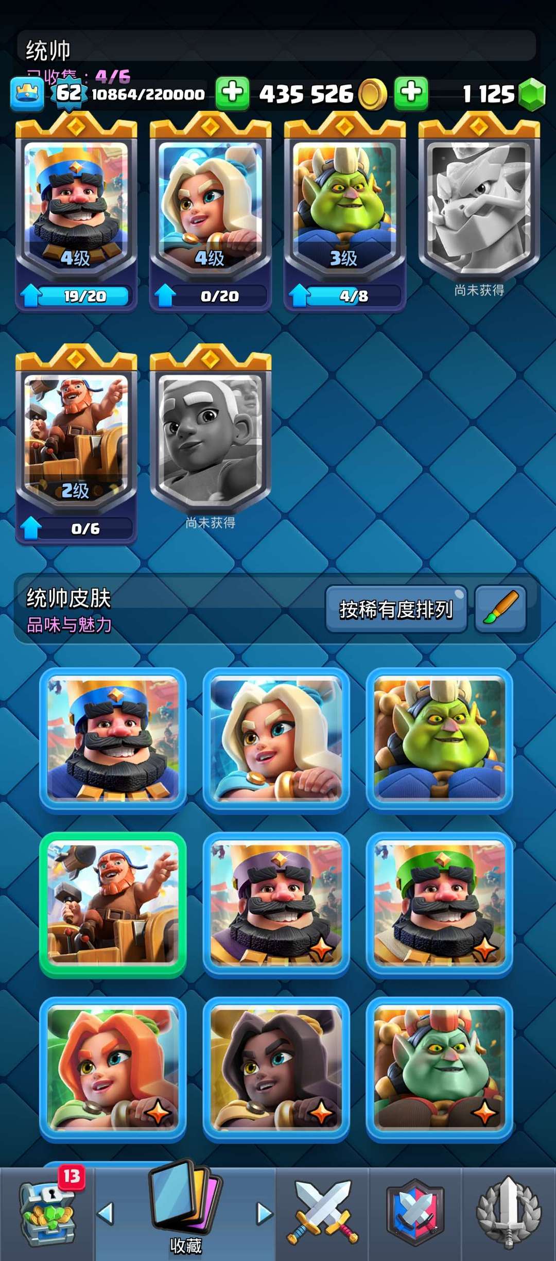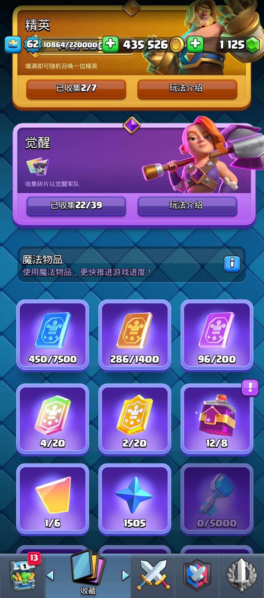 杯数 12000 杯, 合合奇兵统帅多解锁,近 20张卡牌觉醒,烟花猪卡组全满级,看图加 V