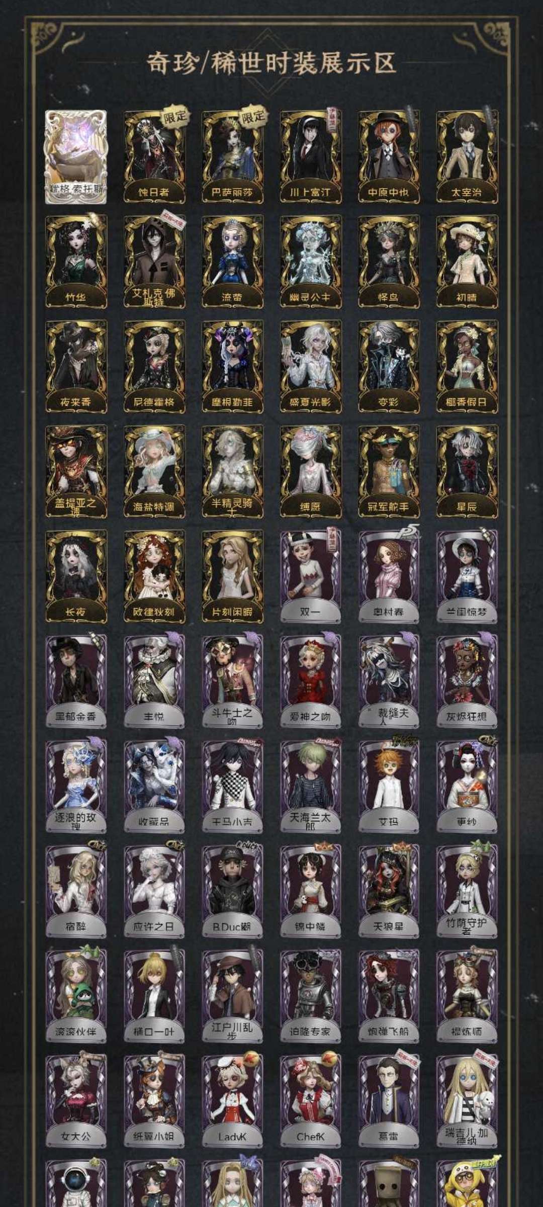 祭司虚妄 50金 艾扎克 蚀日者 太宰治 中原中也 川上富江 欧律狄刻 流萤 变彩 长夜 初晴 竹华