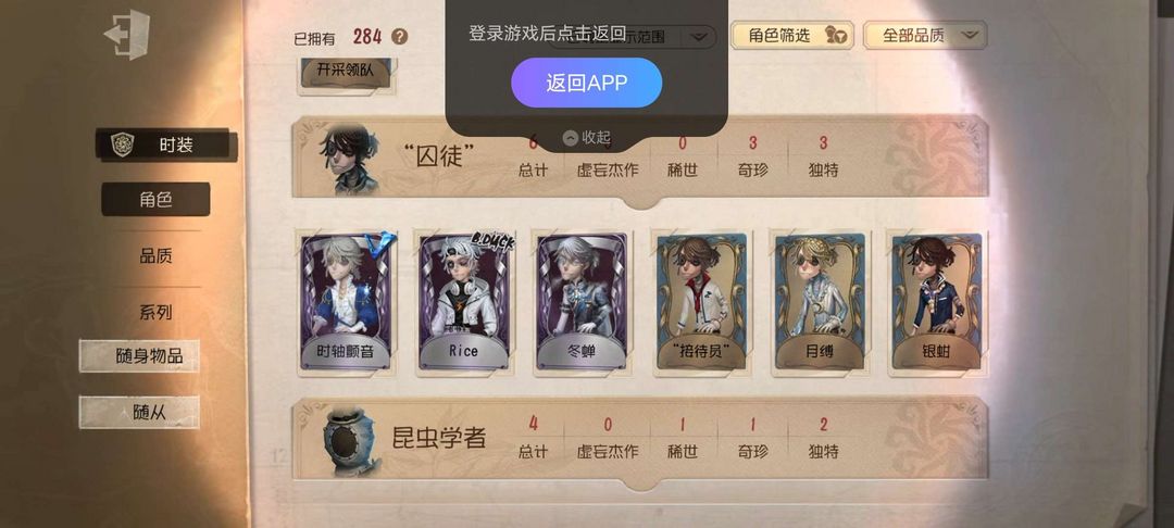 稀世时装总共10个奇珍时装总共73无共享 可发言 可用体验卡 可打任何模式除排位到时间没人的话可继续