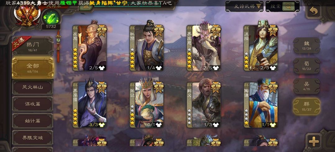 双形态杜预53史诗【二等大将军】动刘焉动神荀彧-神鲁肃-动态文鸯-动神孙策动界钟会界徐盛动神吕布