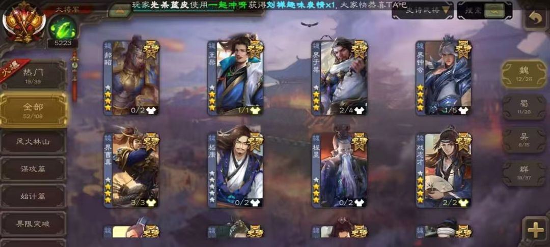 新皮回廊杜预【有点将卡】倚星折月玉龙动神郭嘉-动谋曹丕-双形态界钟会-界徐盛(大宝)谋貂蝉裴秀