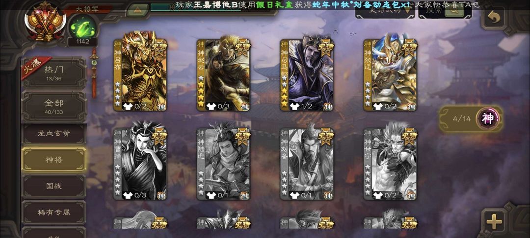 【点将足】大将军—回廊十常侍动神司马懿动谋貂蝉动孙寒华文鸯裴秀清河公主大宝歌王界左慈戏子