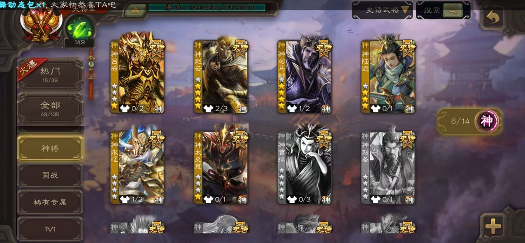 限制: 租号2次及以上 |装备描述:界钟会☆曹婴☆动态星周不疑☆花鬘☆动态关索☆骆统☆动态周处☆吴景☆界徐盛☆留赞☆动态许攸☆谋张角☆动态界李儒☆动态白马☆动态南华老仙☆星黄忠☆星董卓☆神吕布☆神陆逊☆神太史慈