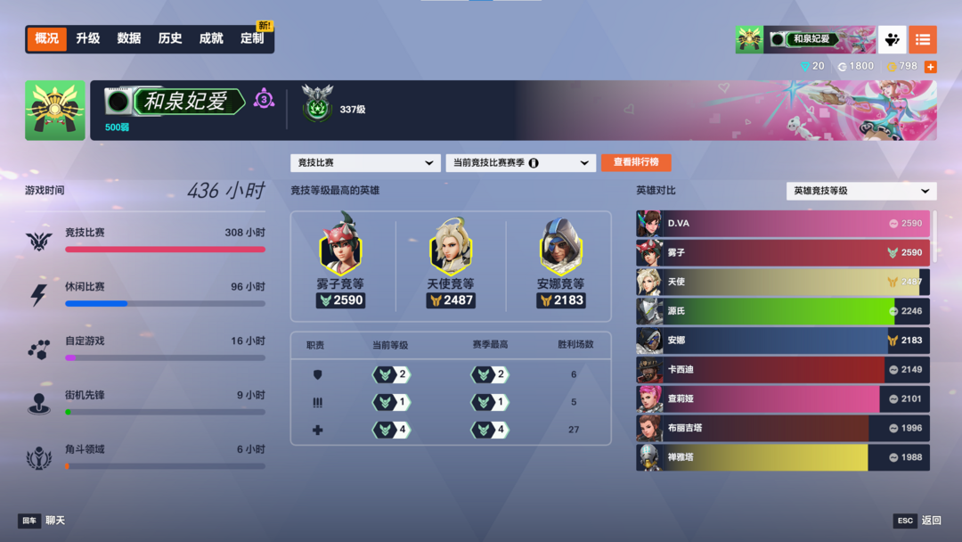 有很多皮肤 只有新出的三英雄原皮 排位号 三位置白金 有dva神话皮 安娜神话枪