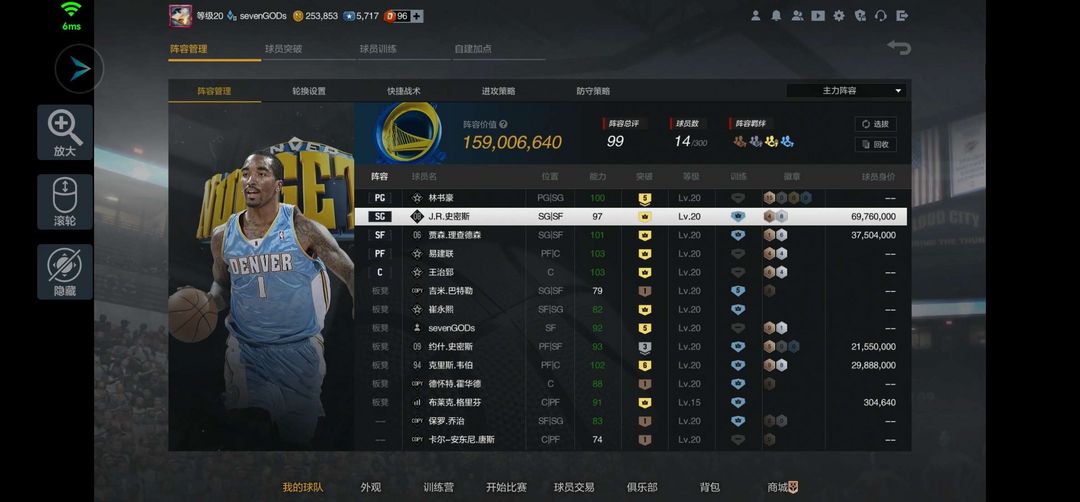 ⭐1.6亿低分阵容 ❤JR史密斯+理查德森+5韦伯+4鹰王,8️⃣个满训,✅街头王朝可排位