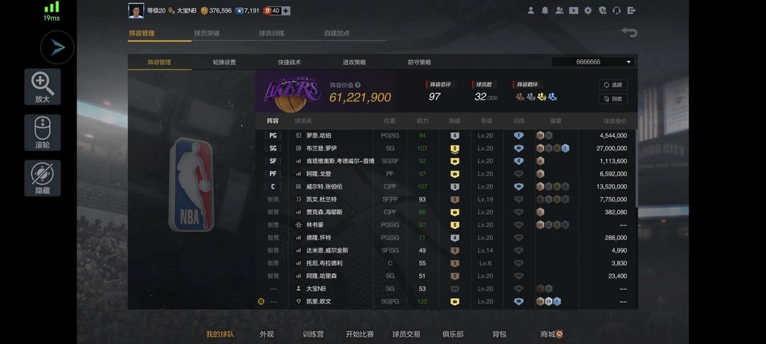 装备描述:5突满训布兰登罗伊,3张伯伦,带队王朝账号禁止利用账号进行开挂、使用辅助违规软件诈骗等违规操作。