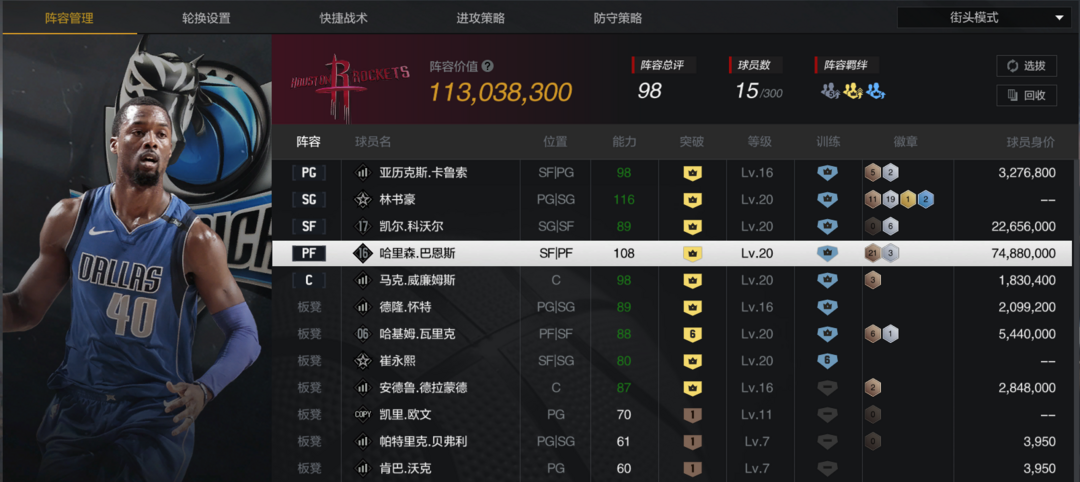 租3送1租5送2角色名:历史16哈里森巴恩斯