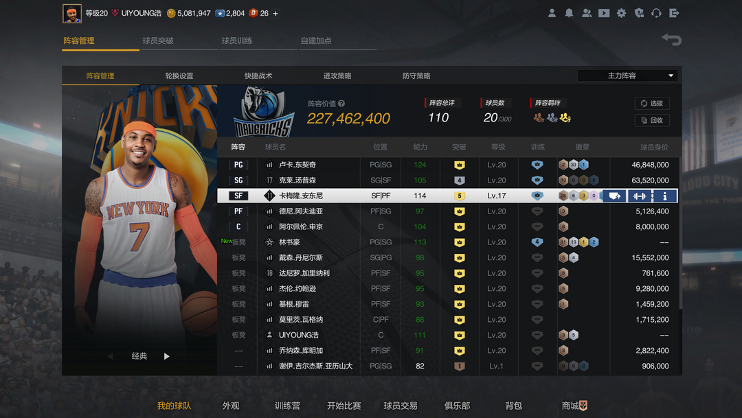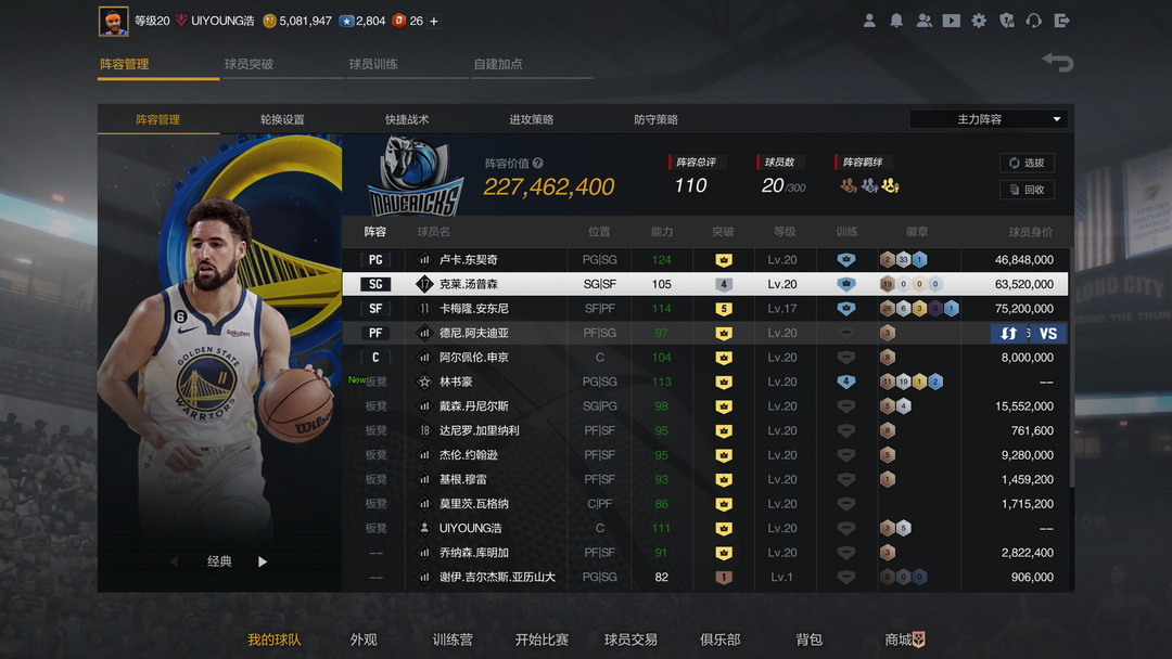装备描述:满突东七七带时刻/5突安东尼/4突逆境佛祖克莱汤普森/满突带时刻林疯狂/3张满特训,所有模式都可以玩