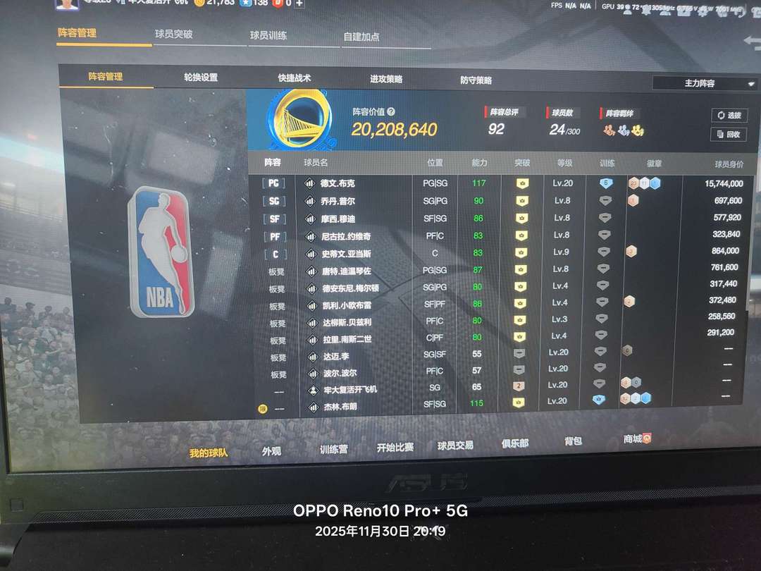 装备描述:单布克,6训,还有一些喜欢的小众球员