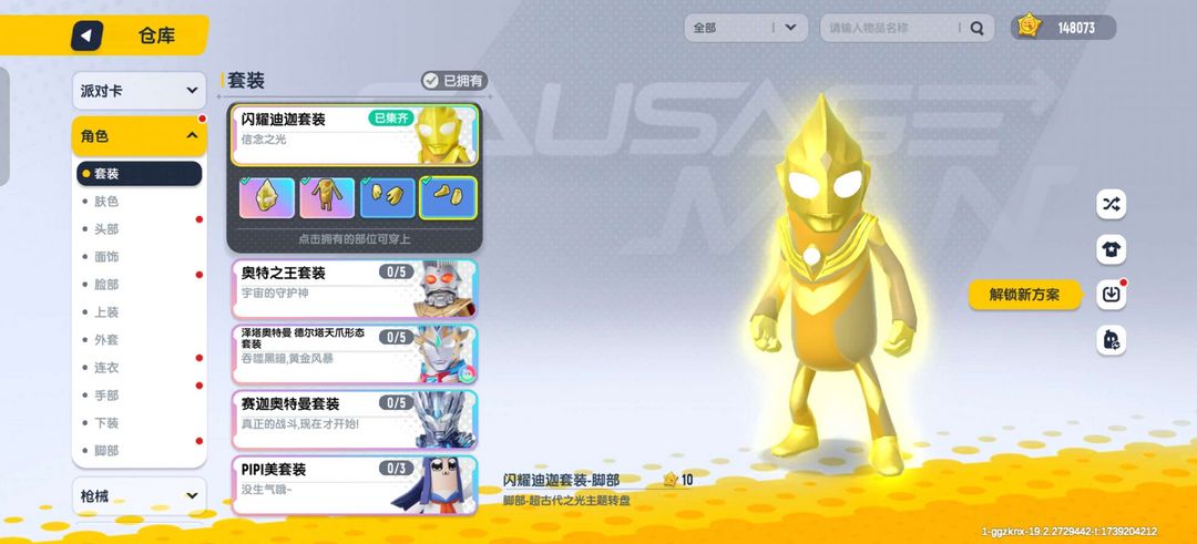 装备描述:神话黑色迪迦。大量稀有枪皮,各种身法套装